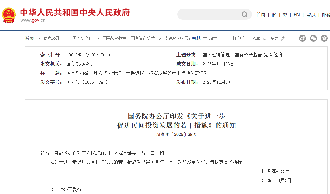國務院辦公廳印發《關于進一步 促進民間投資發展的若干措施》的通知